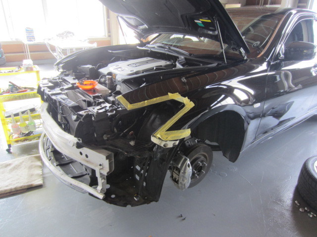 早速フロントバンパーを外し、ヘッドライトを取り外させて頂きました。