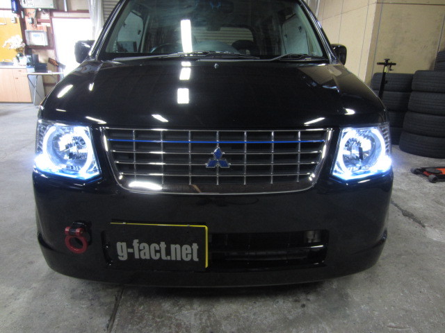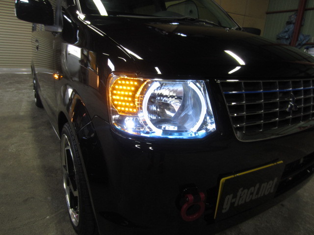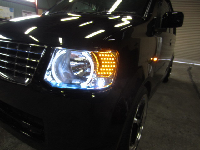 ekワゴンへのヘッドライトカスタム及びハイマウントカスタムになります。
