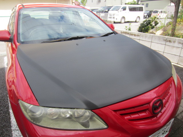 同級生のKくんのアテンザへフードラッピングを施工させて頂きました。