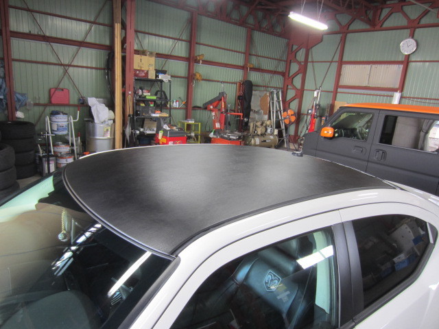 ルーフラッピングはHEXIS社の黒皮調シートをチョイス。