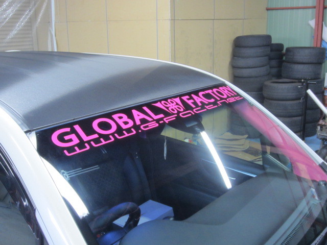 最後に当社オリジナルロゴステッカーをフロントガラスへ貼らせて頂きました。