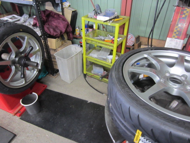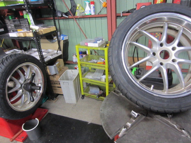 1本ホイールに歪が有との事で、左後ろへ装着しました。