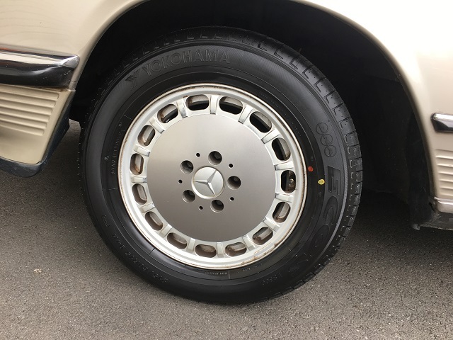 旧車ベンツのタイヤ交換及び腐食したホイールへのラッピング作業をさせて頂きました。