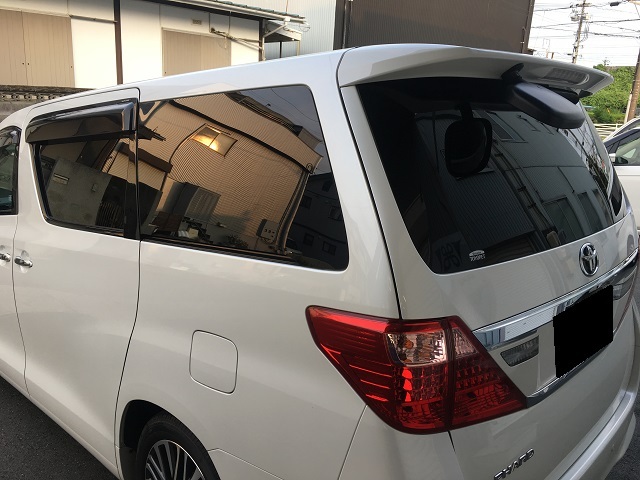 ウィンドフィルム施工での入庫のアルファード。