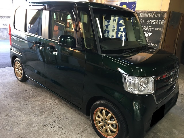 中でもお時間を頂きました作業が、新車のN-BOXへ持ち込まれたアルミホイールとタイヤの