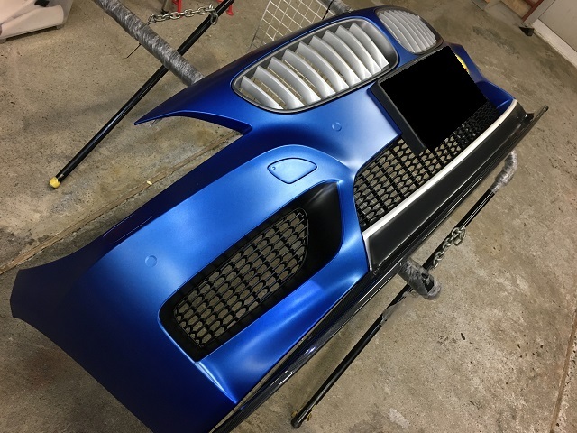 フロント周りの飛び石跡とマーキングフィルムの劣化をカラーラッピングでお色直し。