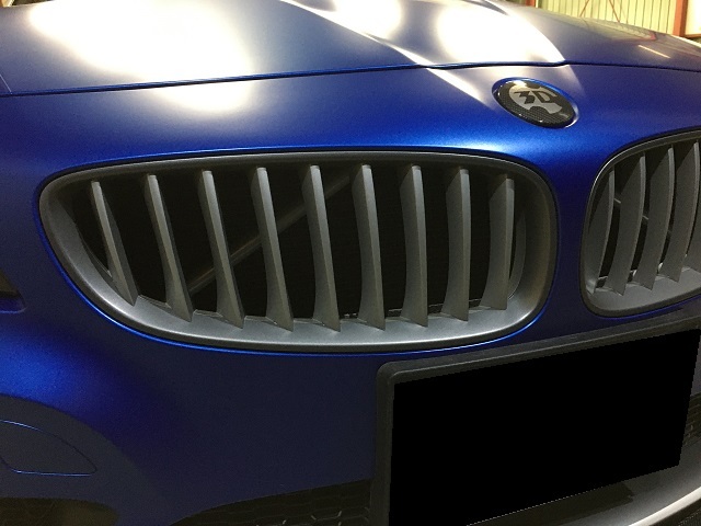 フロント周りのメッキ部へパートラッピング。