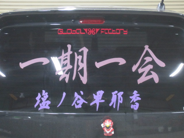 リアガラスにも当社ロゴステッカーを貼っていただきました。