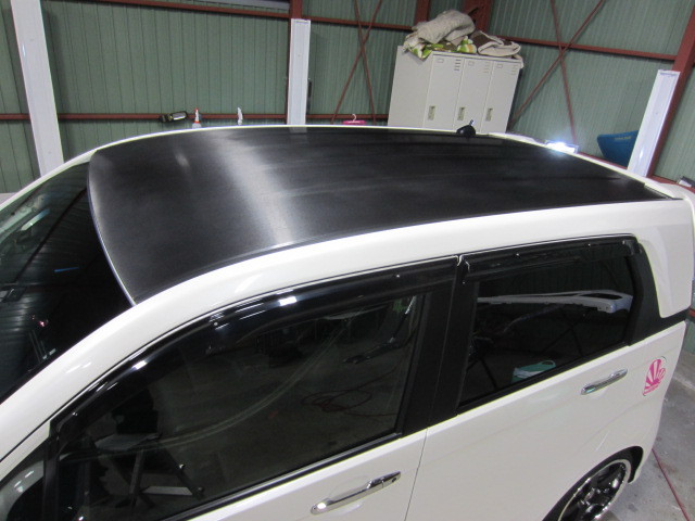 ルーフとルーフエンドを3M製ブラッシュドブラックにてラッピング施工。